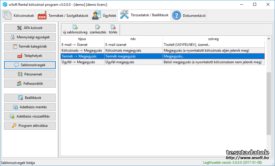 wSoft Rental kölcsönző program - Bérleti szerződés nyilvántartó